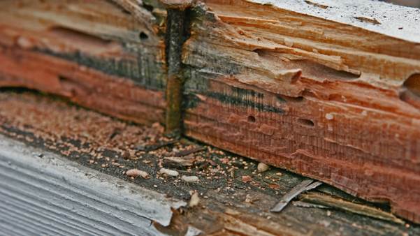 ✔ Inspect for cracks, soft spots, or frass (termite residue)